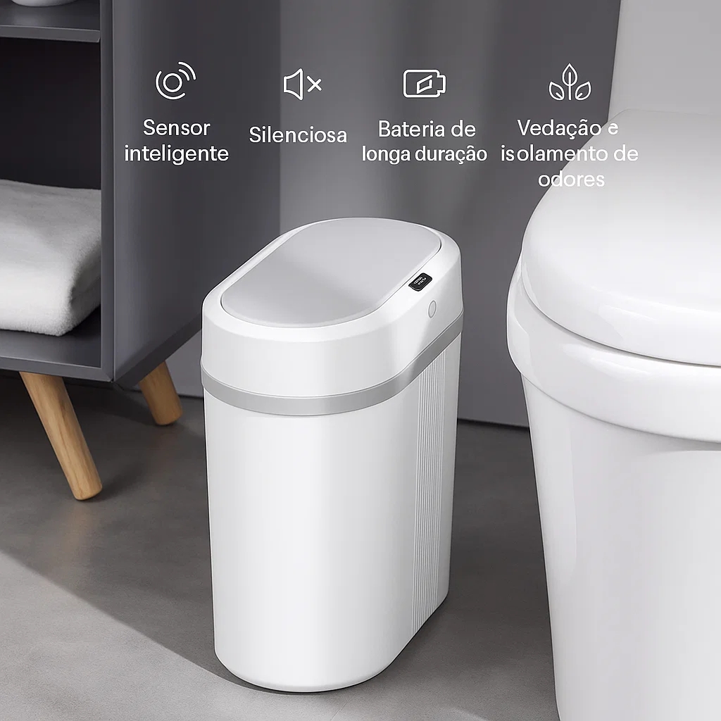 🚫 Adeus contato com germes – Abertura automática sem precisar tocar na tampa.